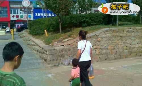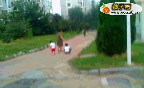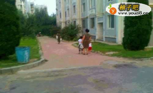 4家人带两个孩子的时候,就要到小区的广场上玩,不能让孩子在道上玩。
