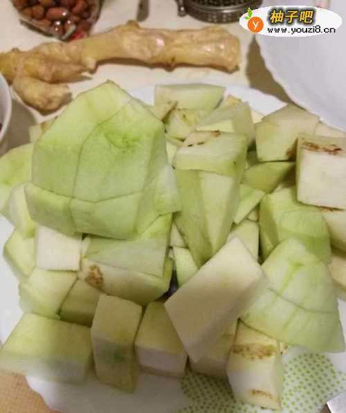2茄子去皮,切成大块。蒜切碎,葱切葱花备用。