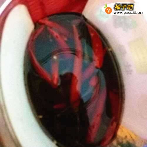 4几个小时后,萝卜的水份出得差不多了,如图可见多了很多的汁水。把水倒出来,这个汁水不用倒掉,待会还有用。