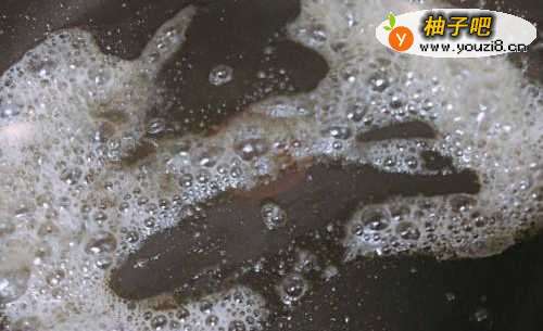 6制作焦糖:把糖、水倒进锅里加热(不要搅拌)