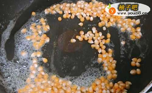 4有少量玉米粒开始爆开时盖上锅盖,开大火不断晃动锅