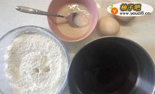 准备好普通面粉300g,红糖100g,酵母3g,鸡蛋2颗。酵母、红糖分别用40度左右的适量温水化开。