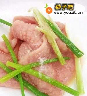 2瘦肉切厚片,两面用刀背排剁留有痕迹即可
