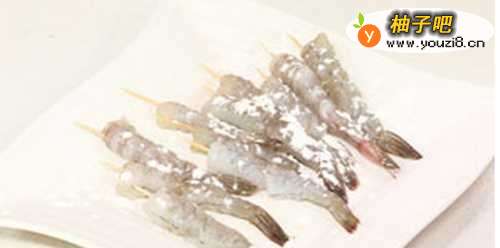 8虾仁中撒上适量盐,再加生粉拌匀后腌10分钟。