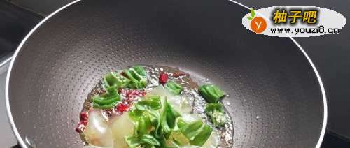 4如图,锅内加入适量色拉油爆香干红椒。