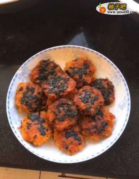 6饼的两面都变得金黄脆硬后可以再多煎一下,一定要煎熟。最后将一个个装盘就大功告成了!