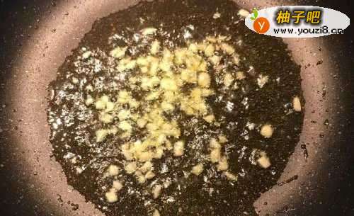 3锅烧热,放入油将蒜末炒香