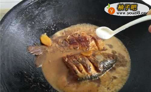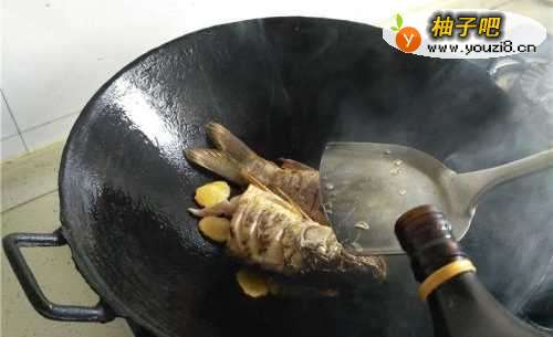 7加入料酒去除鱼的腥味。