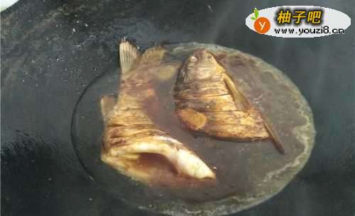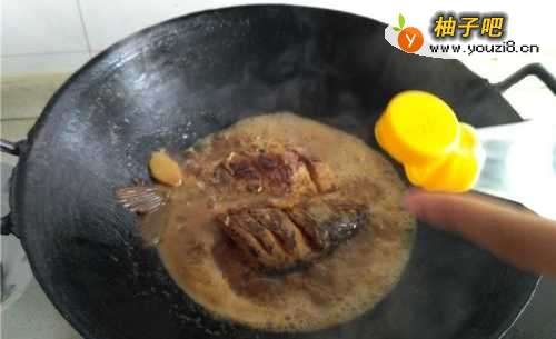 8加入十毫升的酱油给鱼上色。