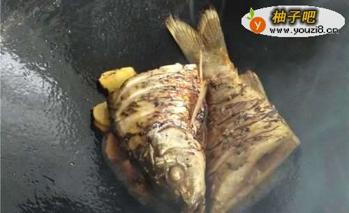 5将洗净的鱼放入锅中。