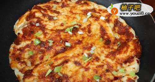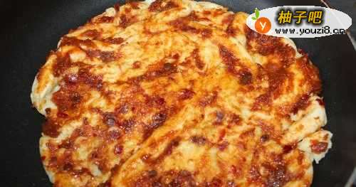 6饼烙熟后,抹上酱,再烙一分钟。