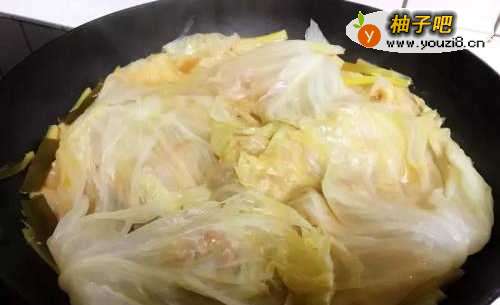 5炖煮过后,慢慢把覆盖在上面的包心菜撕开即可