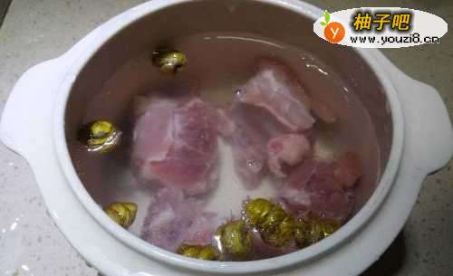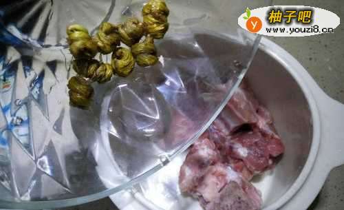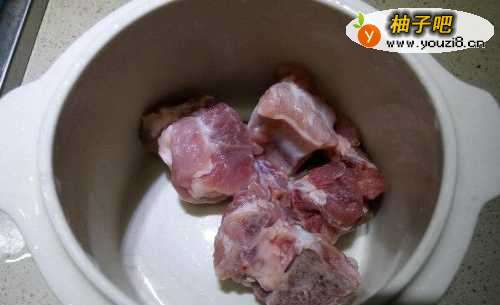 排骨洗净待用。做一个人的量,一个小炖盅半根排骨就可以了;排骨不油腻,所以也不用烫开水。