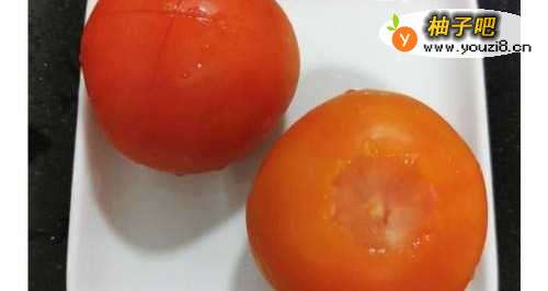 2番茄用开水浸泡,去皮。