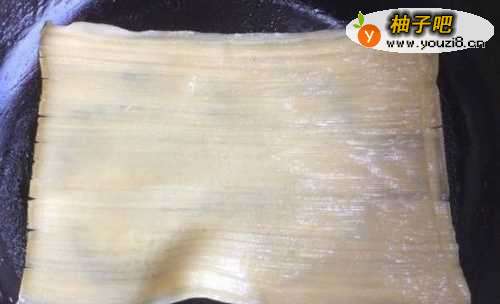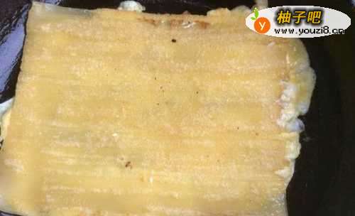 4打入鸡蛋之后,然后将鸡蛋在冷面上慢慢的摊开,如图所示