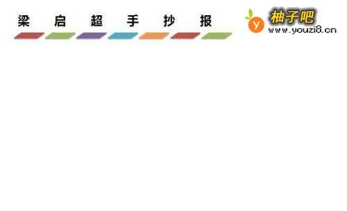 首先,用彩笔在白纸上,画出含有立体感小长方形框架并涂上颜色,在白纸的顶部靠左写上字:【梁启超手抄报】的标题,如下图所示。
