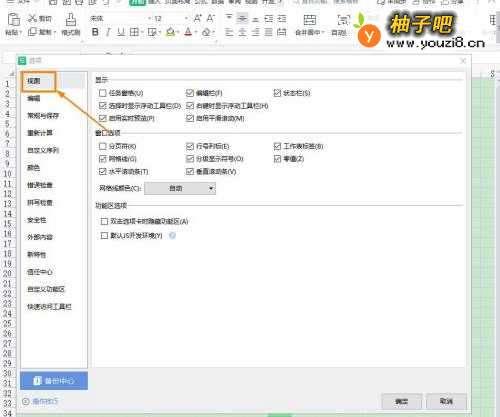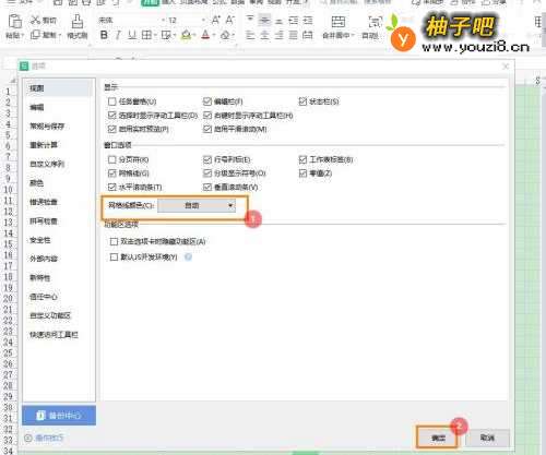 3在视图界面,点击选择网格线【颜色】,点击【确定】即可。
