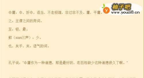 中庸是孔子和儒家的重要思想,尤其作为一种道德观念,是孔子和儒家尤为提倡的。中庸属于道德行为的评价问题,也是一种德行,而且是最高的德行。宋儒说,不偏不倚谓之中,平常谓庸。中庸就是不偏不倚的平常的道理。中庸又被理解为"中道","中道"就是不偏于对立双方的任何一方,使双方保持均衡状态;中庸还可以称为"中行","中行"是说人的举止、德行都不偏于任何一方,对立的双方互相牵制,互相补充。总之,中庸是一种折衷调和的思想。