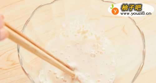 用 40℃ 左右(摸上去不烫就行)的温水冲泡 1g 酵母,搅拌均匀;静置 10 分钟,直到表面浮起细腻的泡沫;