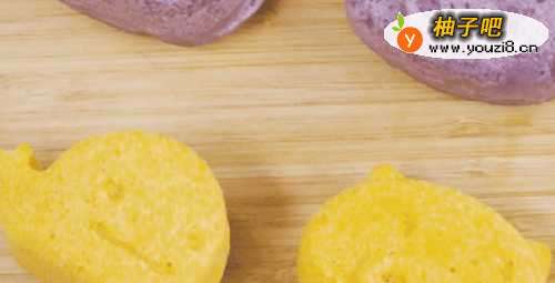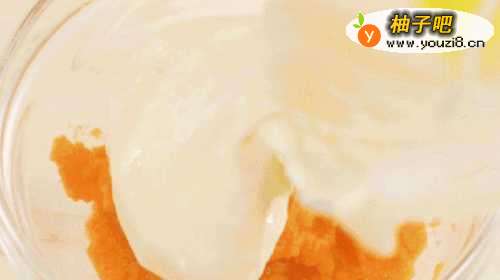 3胡萝卜、紫薯清洗干净,切块蒸熟,用料理棒打成泥;