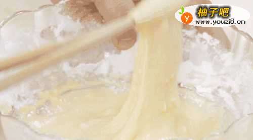 4在面粉中加入鸡蛋、酵母水、搅拌均匀;