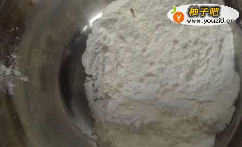 3蕃薯和面粉的比例是2:1,加入面粉和少量水和盐,搅和均匀。