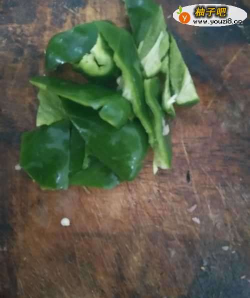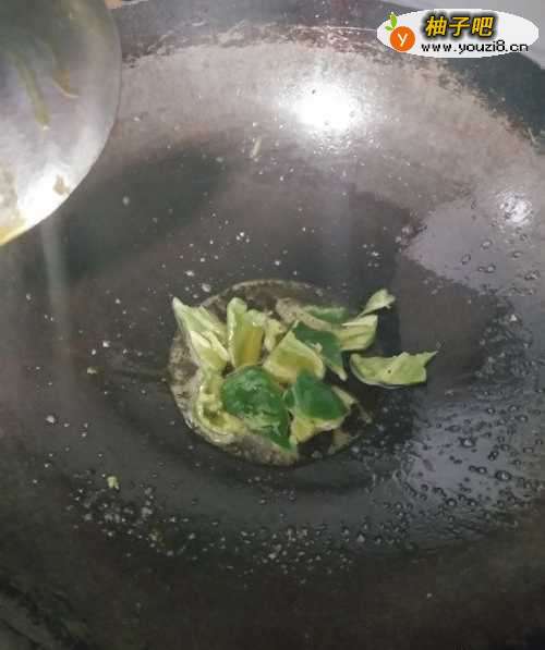 2开火,倒油,将切好的青椒片倒入锅中煸炒,炒至变色即可