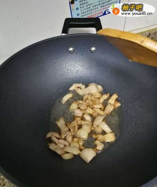 2把五花肉放入锅中炼油