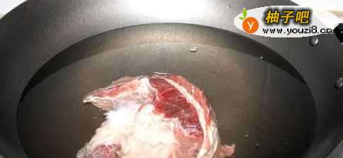 牛肉洗净后放进沸水中,加入料酒,煮开沥干水份,切成小块待用.
