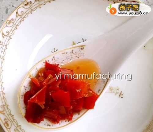 3准备半勺剁辣椒。注意剁辣椒不宜过多,会影响白菜的口感。