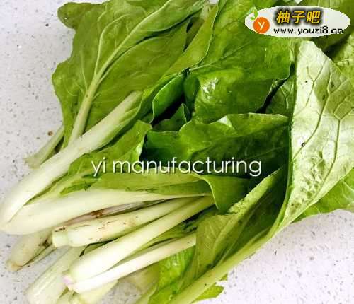 2将白菜苗折成2-3段,清水洗干净,沥干水份备用。