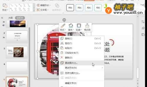 4选择”图片“,单击【鼠标右键】,选择【更改图片】;