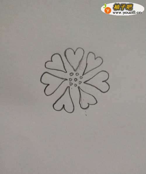 2如图,画出几个爱心围在一起。