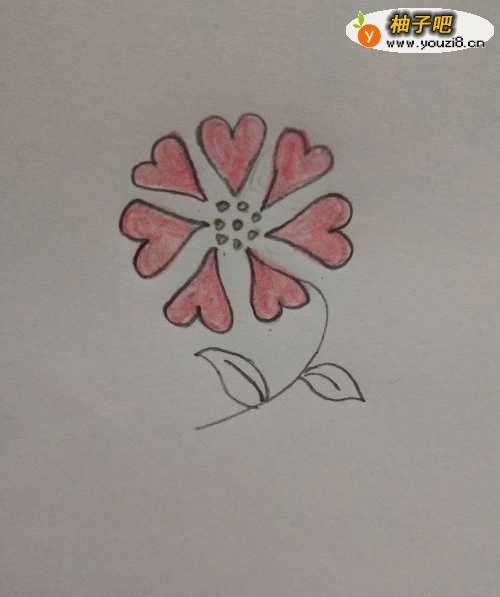 5如图,把花儿的花朵涂上红色。
