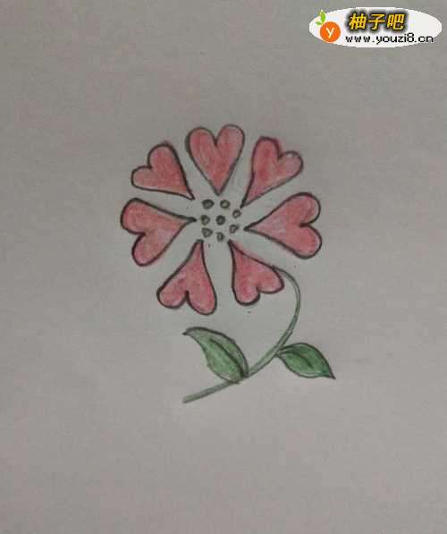 6如图,把花茎和叶子涂上绿色。