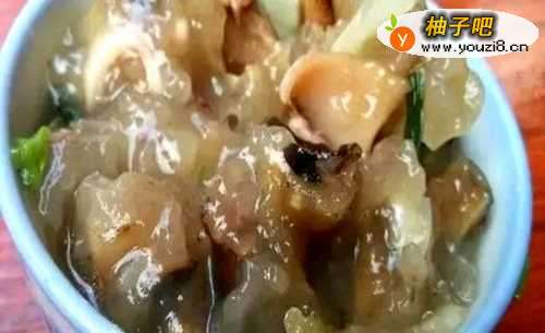 粉猴是通过地瓜粉、瘦肉、鱿鱼、蘑菇等其他原料制作而成的,吃起来十分有弹性,很Q的。