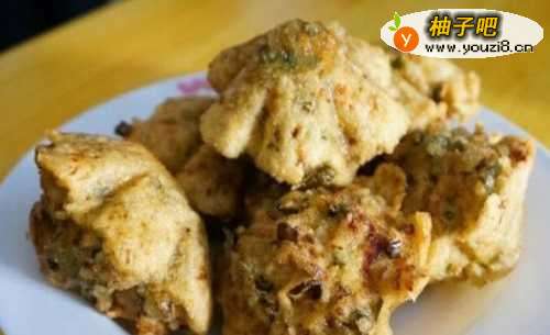 泉港浮粿是通过五角形状的模具,将切碎的蔬菜和地瓜粉搅拌在一起制作成外皮,然后将海蛎、肉用外皮包住放入锅里油炸而成的。泉港浮粿最佳食用方法就是现炸现吃,放久了就不好吃了,适当的蘸点醋可以避免太过油腻。