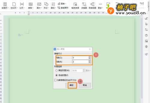 3在插入表格窗口,输入【行】和【列】数,点击【确定】即可。