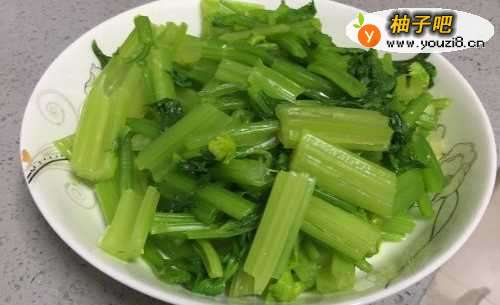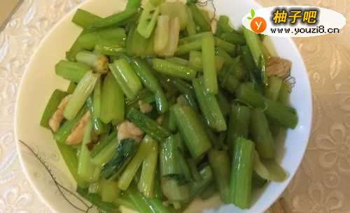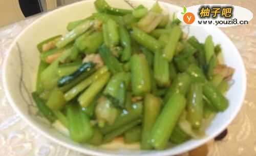 3热锅冷油,当油8成热的时候,放入芹菜。来回翻炒