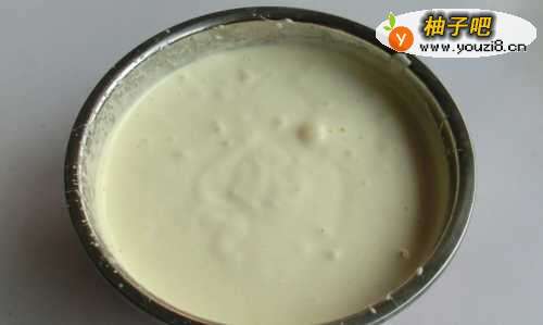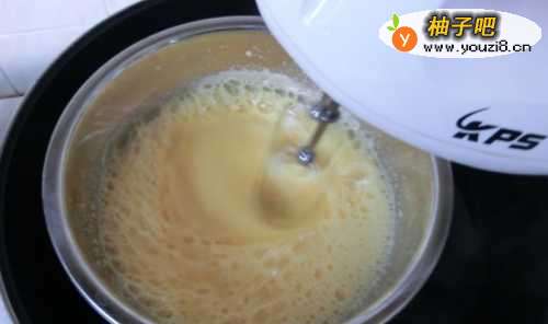 3开高速搅打到体积膨大,颜色发白,转低速搅打到细腻。