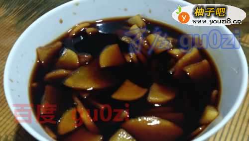 6用酱油、醋、料酒,按喜欢的比例配得酱汁,将萝卜片倒入其中,再放置半个小时选低,就可以吃了。
