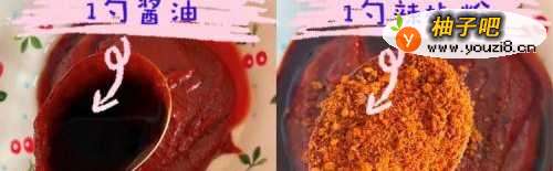 2接着我们加入酱油和辣椒粉