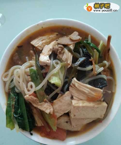 9加入适量的盐、十三香和鸡精搅拌一下起锅,一碗热腾腾的烩菜就做好了。