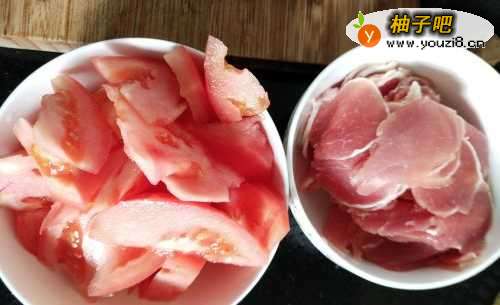 2第二步,把羊肉和廋肉切成薄片装入碗中。