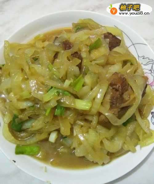 炖好的排骨,炒洋葱时放上几块排骨和汤,味道非常好。