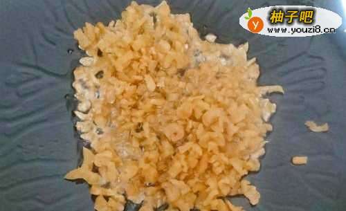 4:热锅倒油,倒入菜脯碎煸炒出香味来。