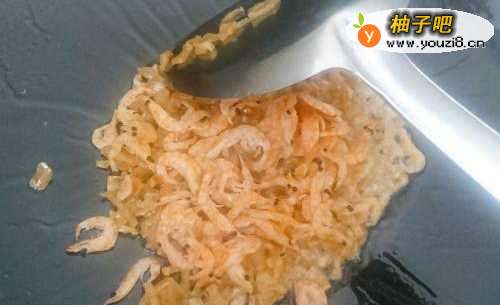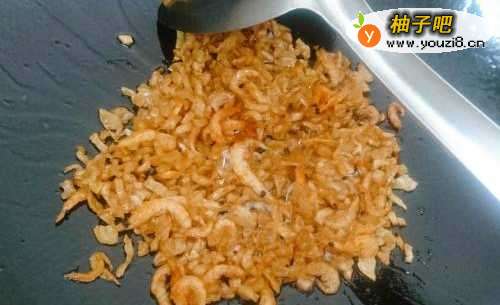 5倒入磷虾干,一同煸炒。