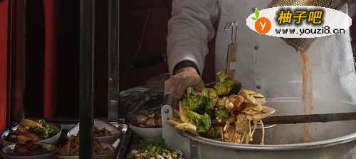 3稀有牛脊髓。爱吃荤食的伙伴都知道,牛脊髓营养价值高,码料调制后的牛脊髓放置碗碗菜内,将事先备好的香辛料和葱花香菜佐料一起置于碗内,再来一泼高汤辣油顺势而下,香味顿时飘香四溢直击人的味蕾,咕嘟嘟冒着小泡的碗里散发着鲜香麻辣,入口嚼之肉质精道,口有余香,爽翻!