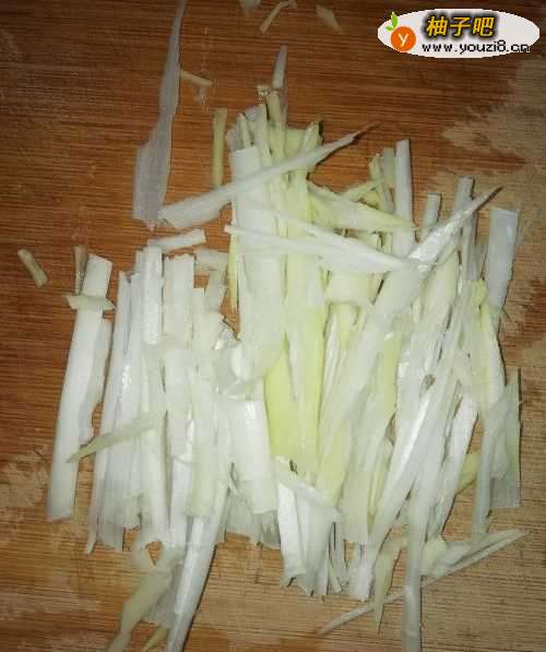 4切好大葱丝、姜片备用。