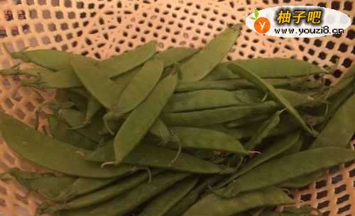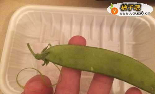 首先,将买来的荷兰豆撕去边边。一定要撕去边边,不然吃起来会觉得荷兰豆硬硬的,很不好吃。